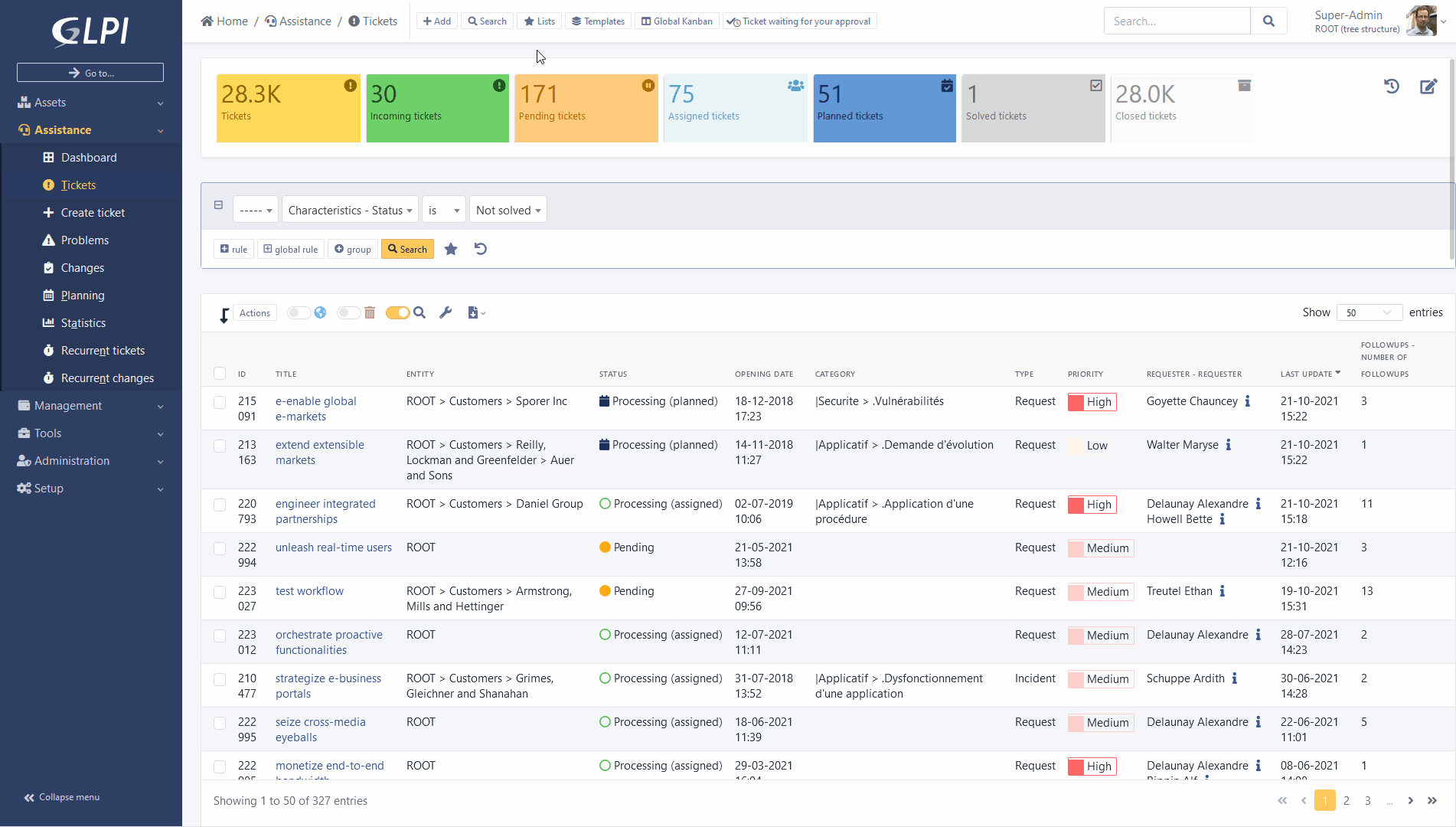 A destination du support utilisateur et des équipes support, il a été mis en place un service de ticketing afin de réceptionner les incidents, de les centraliser et de les résoudre tout en gardant un suivi.